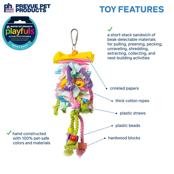 - Satisfies every birds shredding, plucking and preening urges