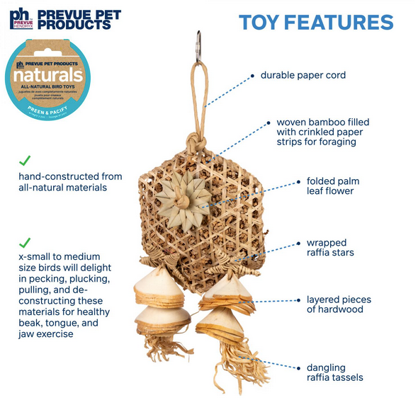- A wide variety of materials keep birds engaged for hours